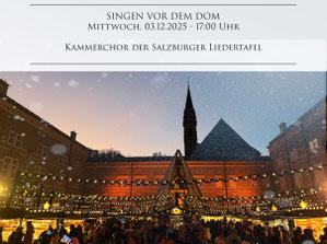 Am Mittwoch 03.12.2025 um 17:00 Uhr singt der Kammerchor vor dem Dom auf dem Salzburger Christkindlmarkt.